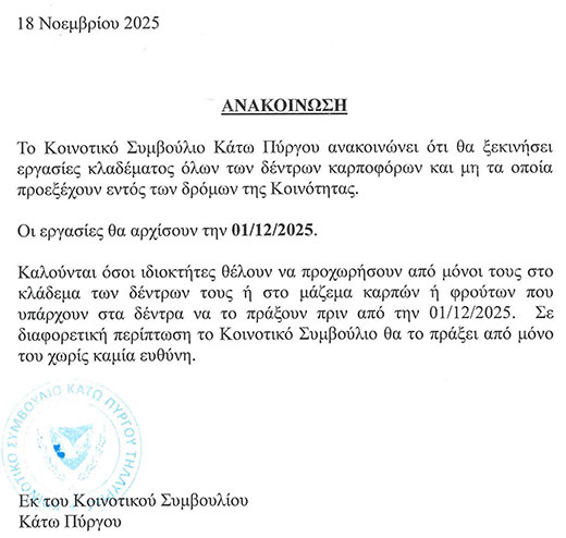 Ανακοίνωση - Έναρξη εργασιών κλαδέματος δέντρων