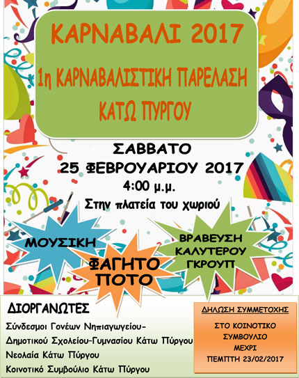 1η Καρναβαλίστικη Παρέλαση Κάτω Πύργου (25/2/2017)