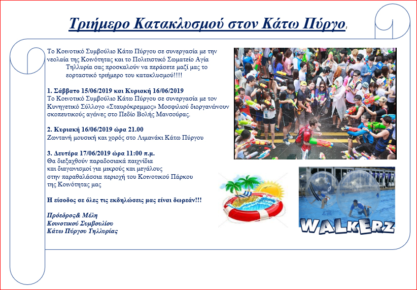 Τριήμερο Κατακλυσμού στον Κάτω Πύργο 15-16-17/6/2019