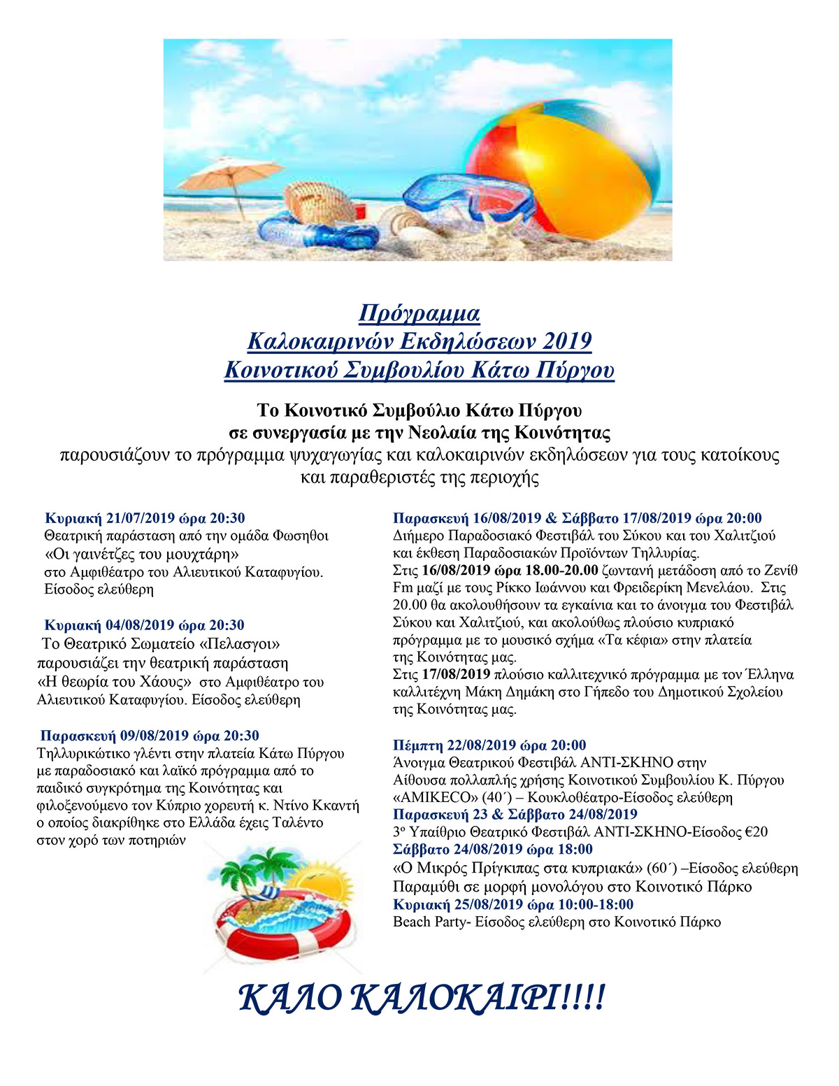 Πρόγραμμα Καλοκαιρινών Εκδηλώσεων 2019