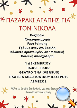 Παζαράκι Αγάπης για τον Νικόλα 1/12/2019